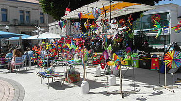 Décorations de jardin réalisées en matériaux marins : girouettes, éoliennes, mobiles, effaroucheurs à oiseaux.
