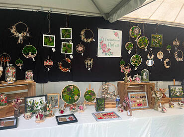 L'enchantement nature propose des créations artisanales fabriquer par nos soins à base de fleurs séchées et stabilisées. Les créations se décline sous la forme de couronnes décoratives murales (vue aériennes, cadres végétaux), de bijoux (boucles d'oreilles, barrettes à cheveux, bracelets) ainsi que toute une gamme de créations décorative pour l'intérieur.